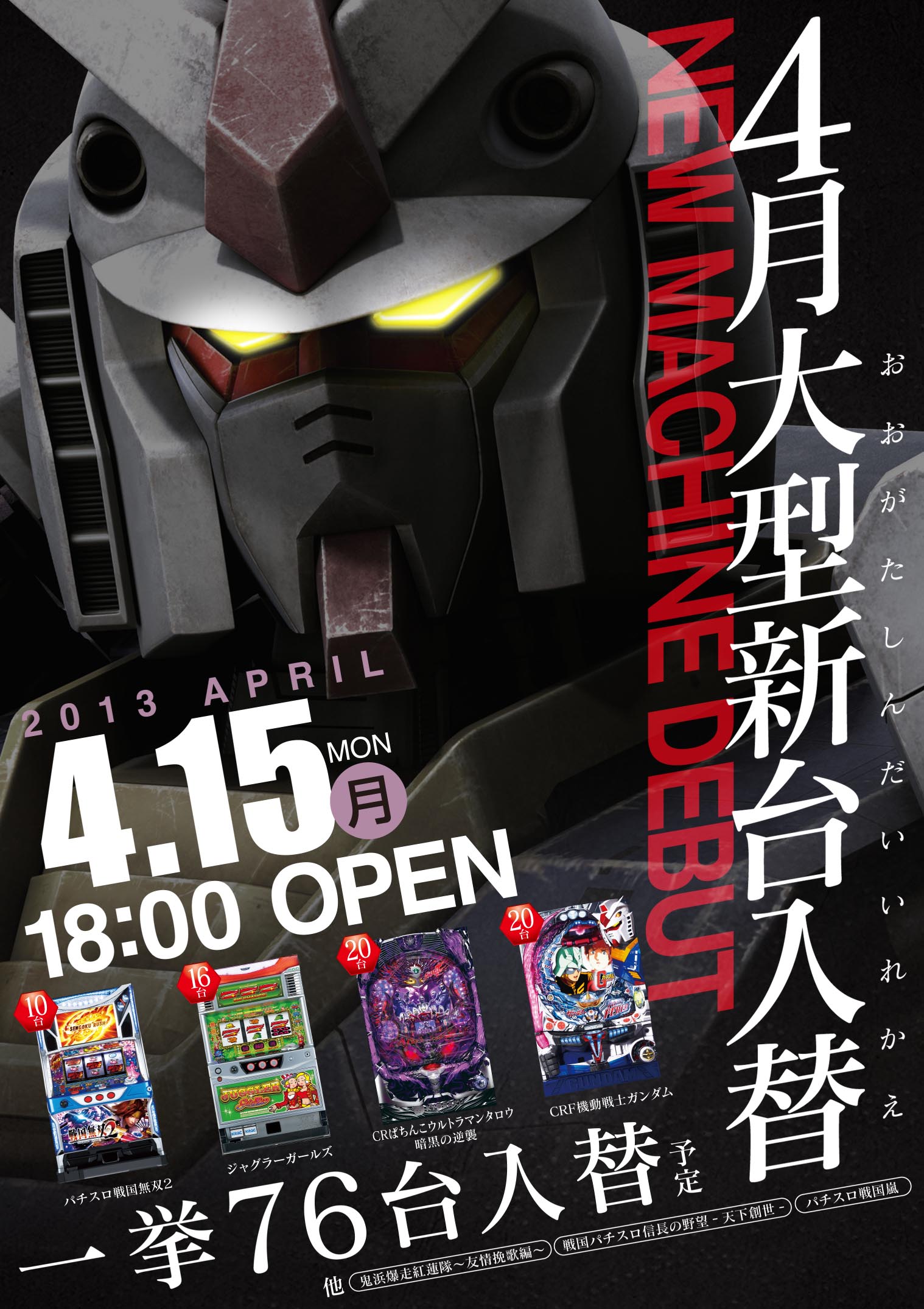 いよいよ、4月15日新台入替18時開店(予定)です♪