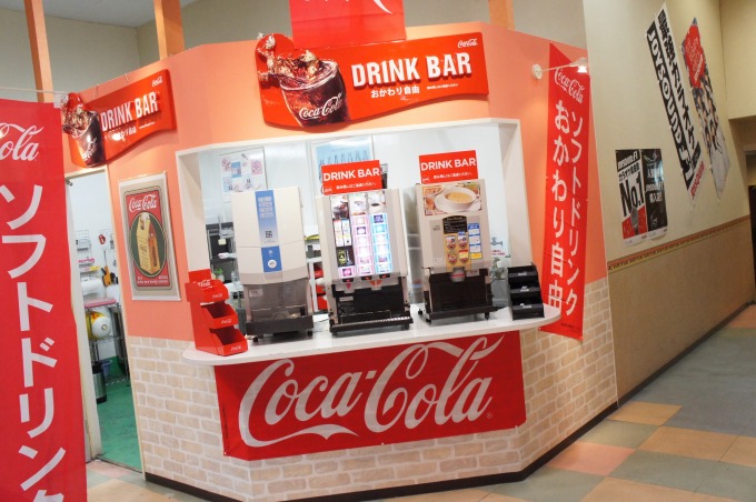 コカコーラ・メロンソーダ・カルピス・カルピスソーダ・カルピスメロン・オレンジ・レモン・ピーチ・ピーチスカッシュ・ジンジャエール・山ブドウ・山ブドウスカッシュ・野菜と果実・ウーロン茶・爽健美茶・アイスティー・アイスロイヤルミルクティー・アイスコーヒー・アイスカプチーノ・アイスカフェモカ・アイスミルキーココア・アイスココア・アイス抹茶オレ・ソフローズン メロン・ソフローズン オレンジ・ホットコーヒー・カプチーノ・カフェモカ・ミルキーココア・ココア・ロイヤルミルクティー・オニオンスープ・コーンポタージュ・抹茶オレ